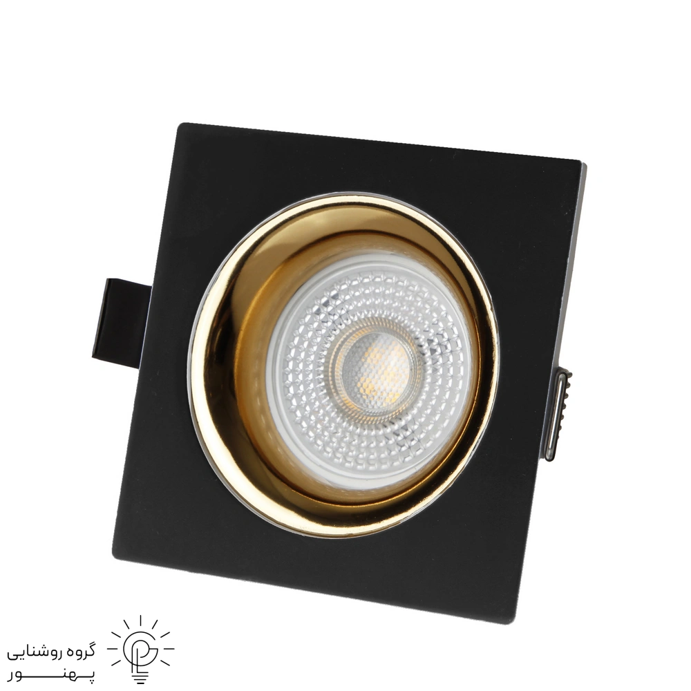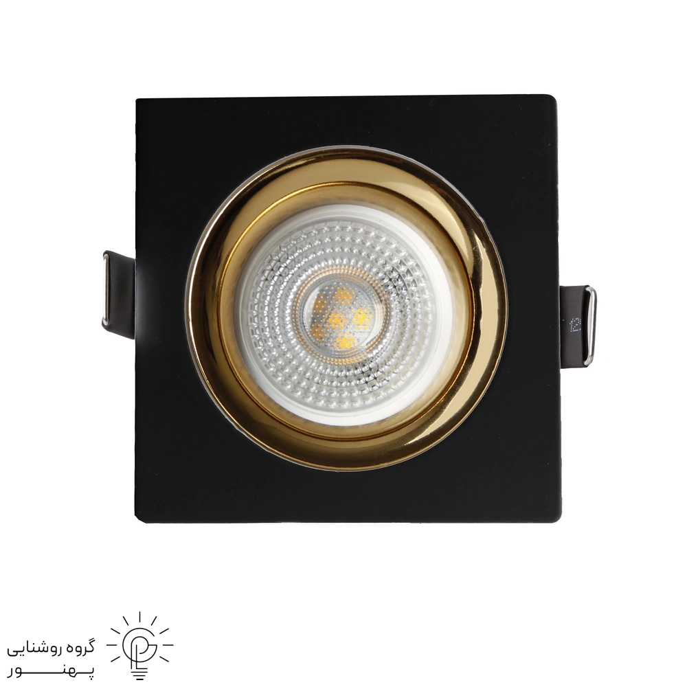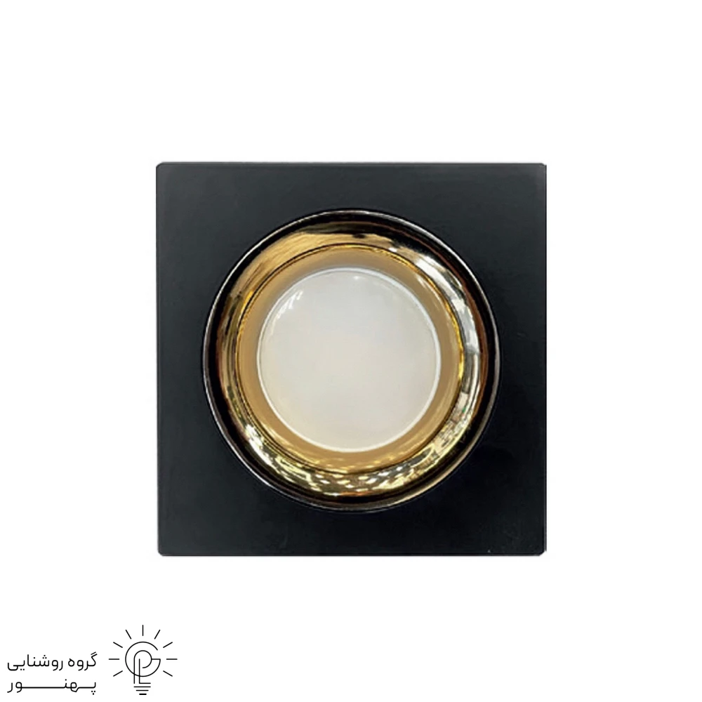 قاب هالوژن مربع الومينيوم مشكي وسط طلايي کد6628